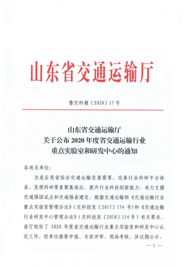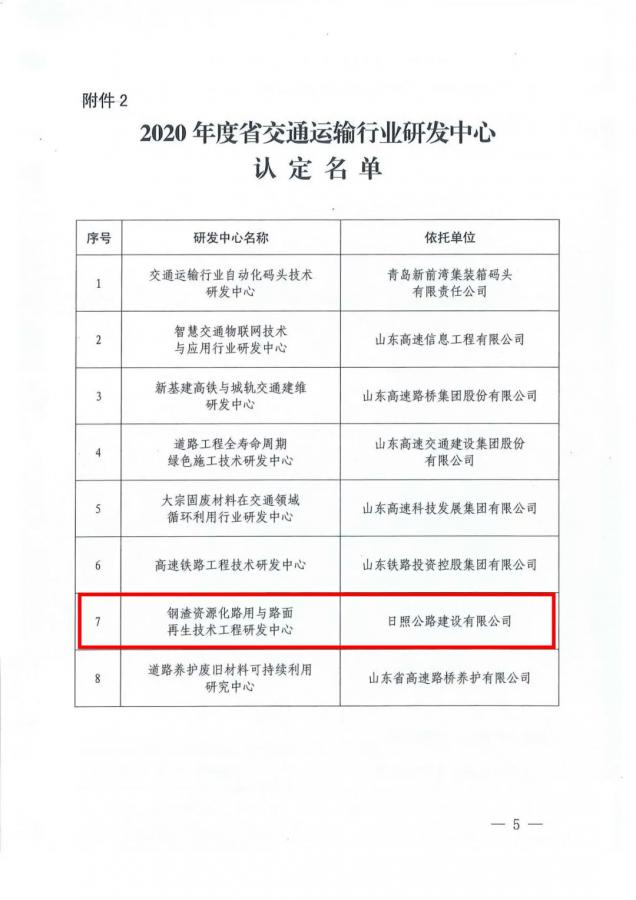 11月5日,省交通運輸廳公布2020年度省交通運輸行業重點實驗室和研發中心,建設公司“鋼渣資源化路用與路面再生技術工程研發中心”順利通過考核認定。