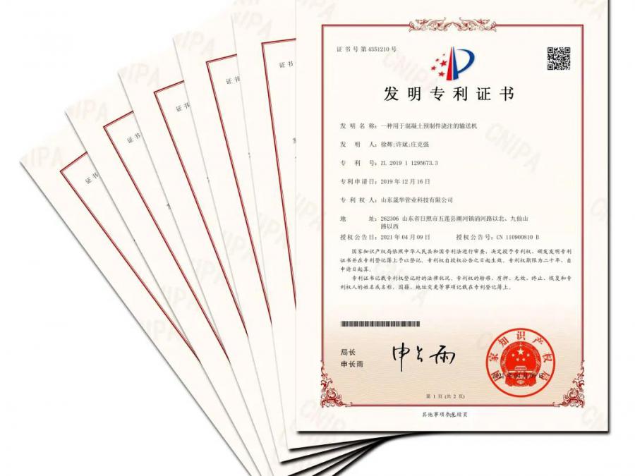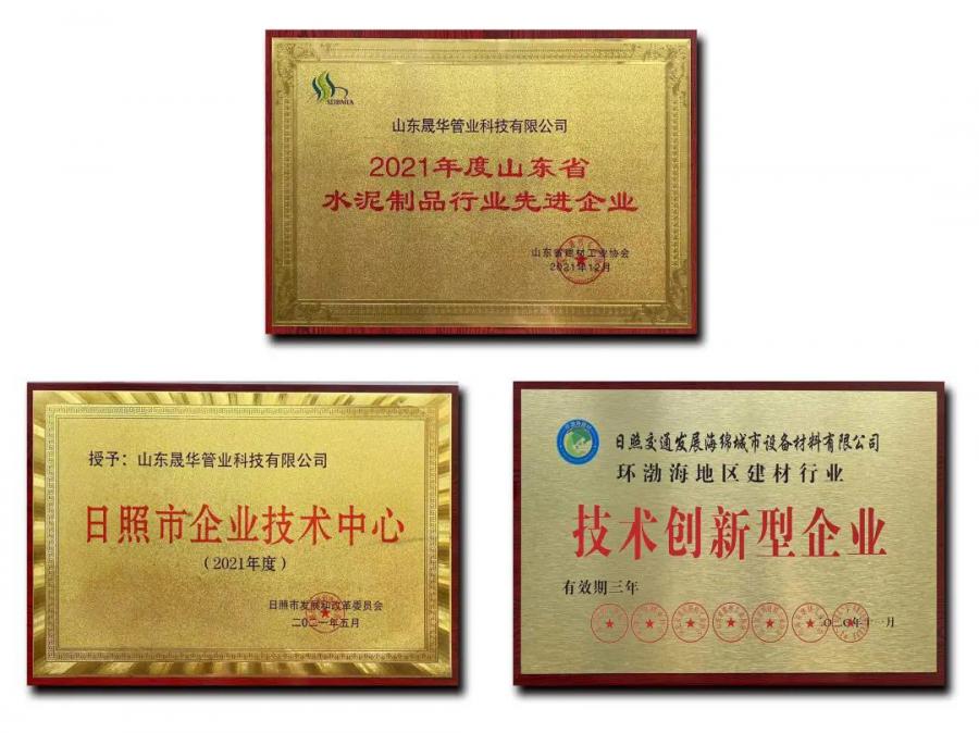 晟華管業公司成立以來,緊跟國家政策和市場導向,以綠色環保、智能智造為路徑,堅持科研創新融入生產經營,創新研發混凝土管管壁處理器、抗震方艙公寓,創新應用ERP項目管理系統、車間8S精細化管理、安全互動體驗區等,全面提高了產線自動化水平,實現了全流程線上閉環運行,經營效能不斷提升,增強了公司核心競爭力。目前晟華管業公司獲得國家發明專利2項,實用新型發明12項,計算機軟件著作權12件,先后榮獲“環渤海地區建材行業技術創新型企業”“日照市企業技術中心”“水泥制品行業先進企業”等榮譽稱號,技術創新水平實現了“質“的躍升。