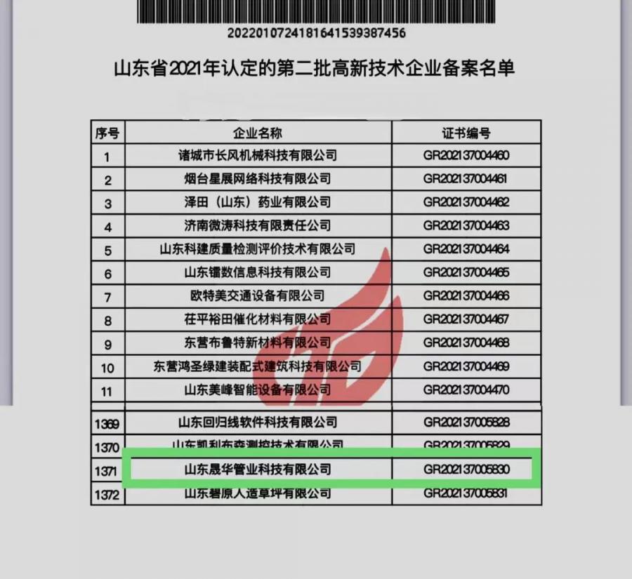 近日,集團晟華管業科技公司順利通過國家高新技術企業認定,標志著公司科技創新工作得到權威認可。