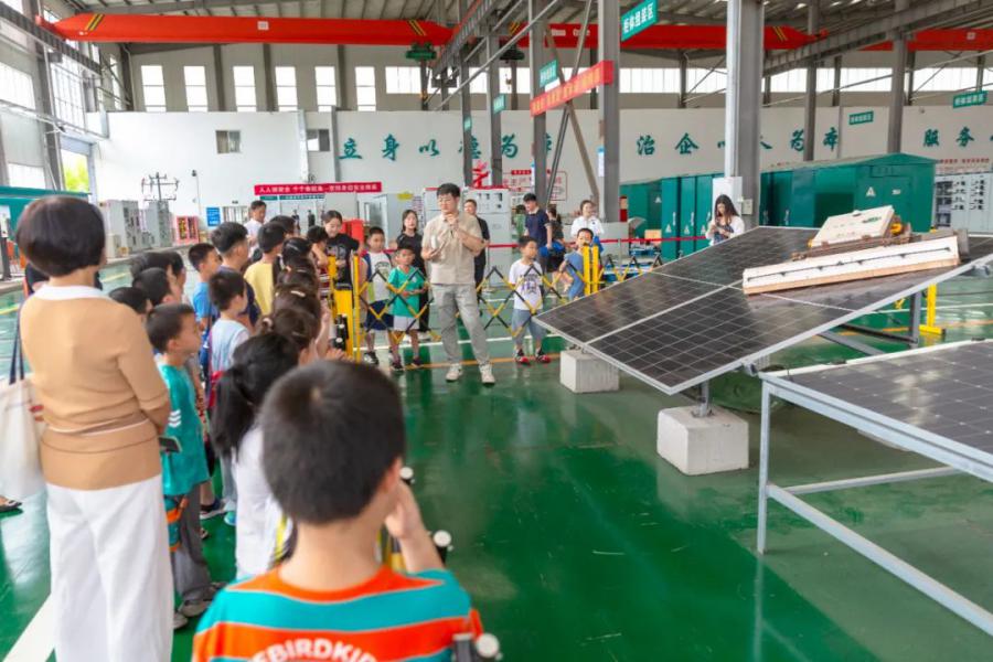 好奇心是探知世界的開始,童年的疑問也許就是未來努力的方向。孩子們走進陽光合源公司智慧化廠房,每一個生產環節都像磁石般吸引著他們稚嫩的目光。技術人員化身“科學向導”,用童趣化的語言搭配實物演示,將產品的生產流程以及應用場景娓娓道來。孩子們親手操作了光伏智能清掃機器人,當機械臂隨著指令靈活轉動時,廠房內響起陣陣驚嘆。這親身實踐的體驗,讓孩子們真切觸摸到科技的脈動,激發了他們對科學研究的興趣。在公交集團,工作人員把課堂“搬上”公交車,與孩子們展開近距離、面對面的互動交流,通過知識問答、互動體驗的方式引導孩子們學習文明出行注意事項及基本自救知識。