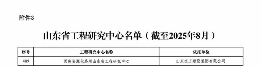 近日,省發改委發布《關于公布2025年新認定及全部山東省工程研究中心名單的通知》,山東交建集團與省交通科學研究院共建的“固廢資源化路用山東省工程研究中心”成功通過復審