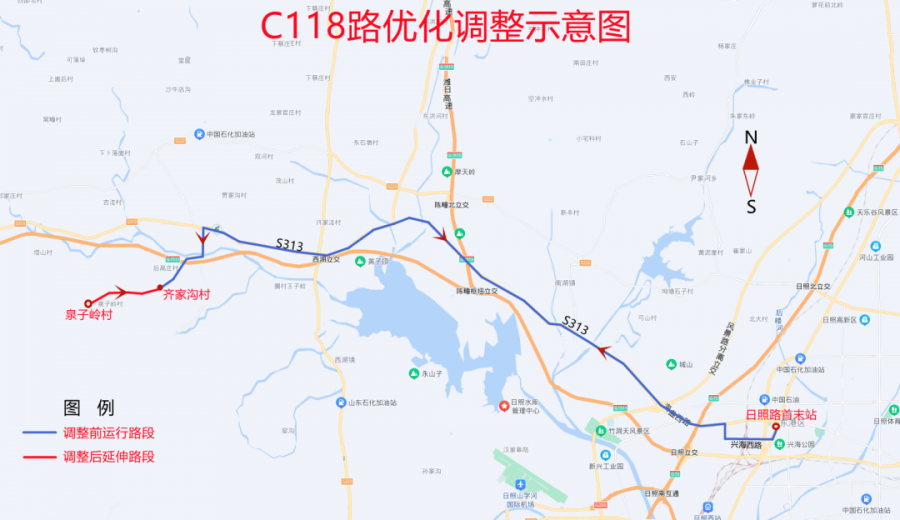 1.由日照路首末站-齊家溝,調整為日照路首末站(不變)-泉子嶺村。