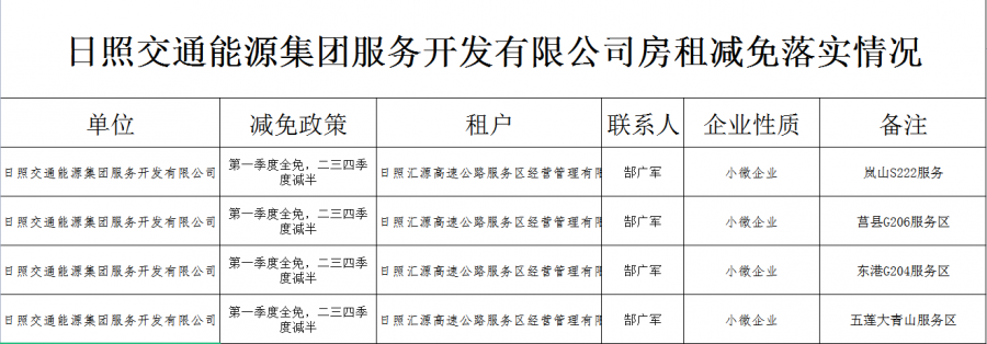 日照交通能源集團服務開發有限公司房租減免落實情況