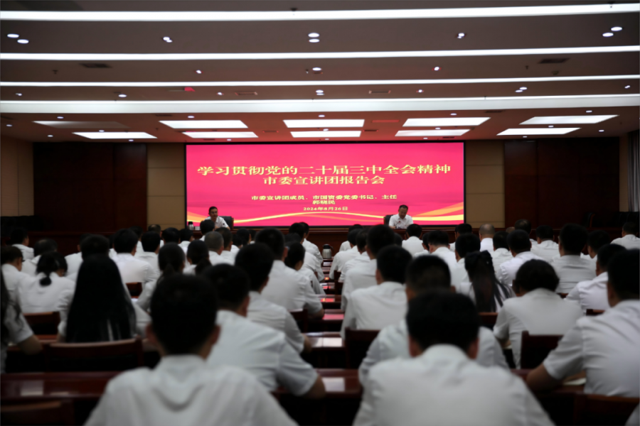 根據市委統一安排,8月26日下午,學習貫徹黨的二十屆三中全會精神市委宣講團報告會在集團舉行。市委宣講團成員、市國資委黨委書記、主任郭曉民作宣講報告。