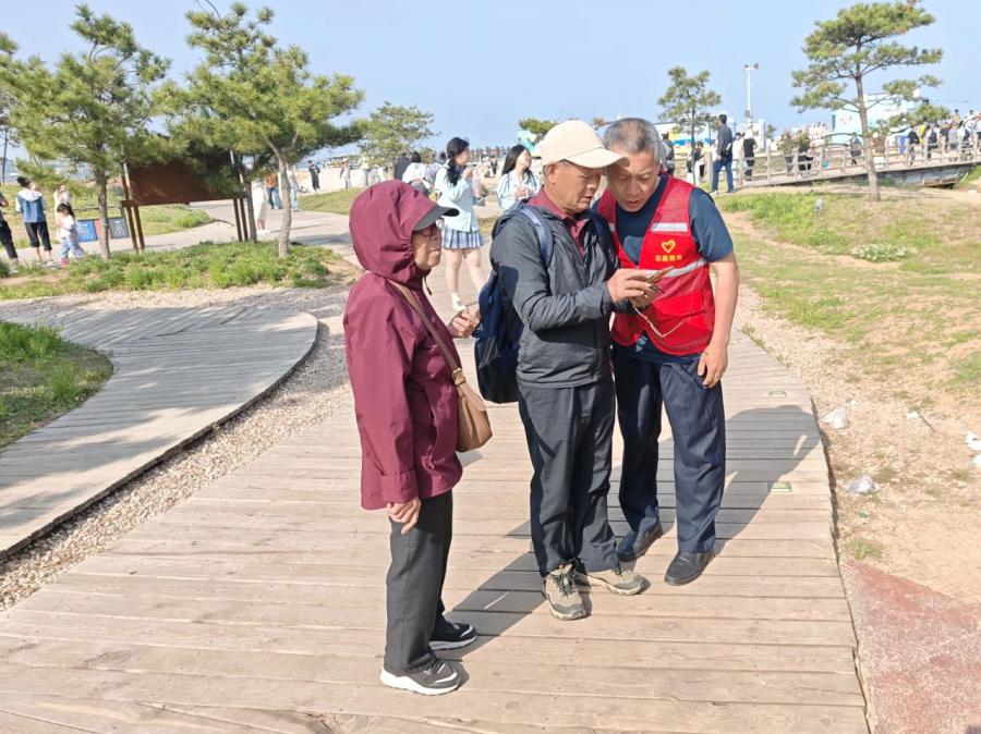 在陽(yáng)光海岸景區(qū),鮮紅的志愿者馬甲和蔚藍(lán)天空交相輝映。志愿者們面向廣大游客熱情提供問(wèn)路、咨詢等便民服務(wù),有禮進(jìn)行文明引導(dǎo),同時(shí)協(xié)助開(kāi)展環(huán)境清潔與秩序維護(hù)等活動(dòng)。