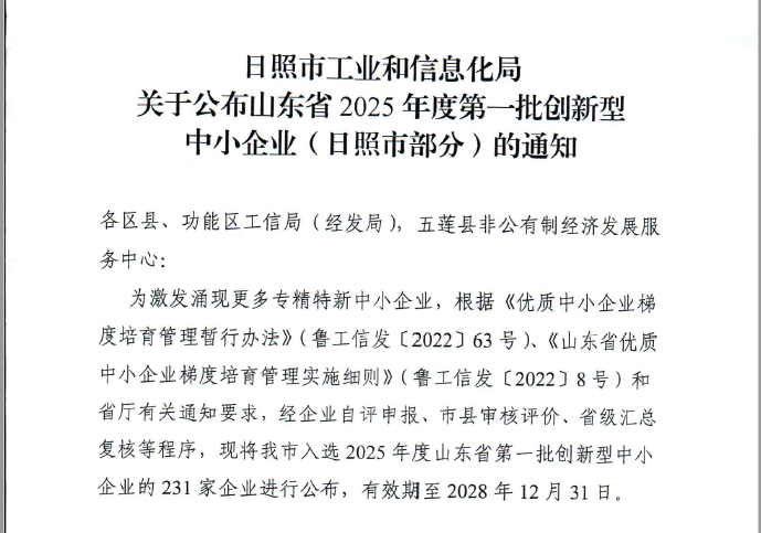近日,經嚴格的企業申報、多級審核及省級復核程序,日照綠茶集團憑借突出的創新能力和專業化水平,成功躋身全省首批創新型中小企業行列。