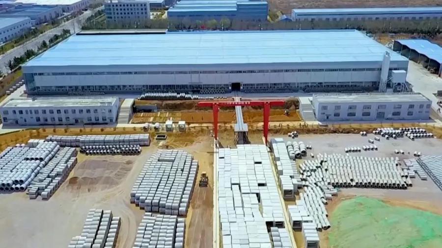 3月20日,在市北經濟開發區山東晟華管業科技股份有限公司廠區內,目前全省范圍內產出的最大口徑管涵——4米超大口徑頂管整裝待發;車間內,芯模振動等多條混凝土管生產線,機器轟鳴,一根根管涵預制成型。